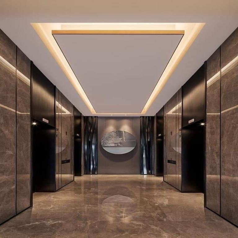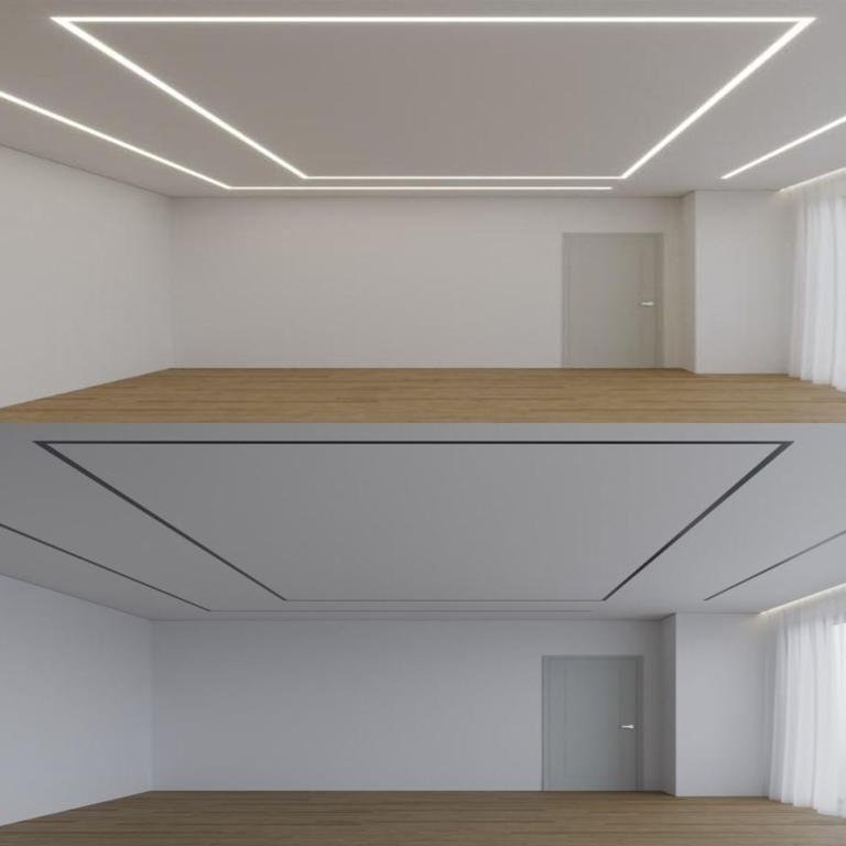 Enhance your interior spaces with a modern gypsum ceiling equipped with elegant linear LED strips. This design adds a touch of elegance, depth, and contemporary character to any space.
