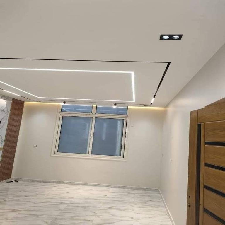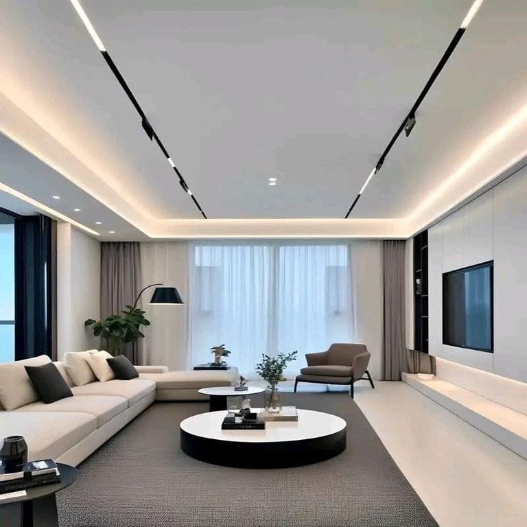 Elegant gypsum board ceiling with hidden LED lighting that transforms your living room into a modern and cozy space. A perfect blend of minimalism and luxury.